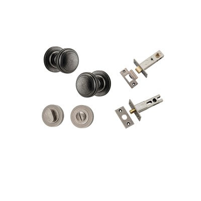 Iver Door Knob Paddington Rose Round Distressed Nickel Privacy Kit
