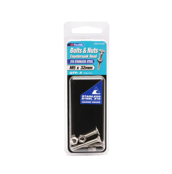 Zenith Bolts & Nuts Countersunk Head M5 x 32mm SS Pk3