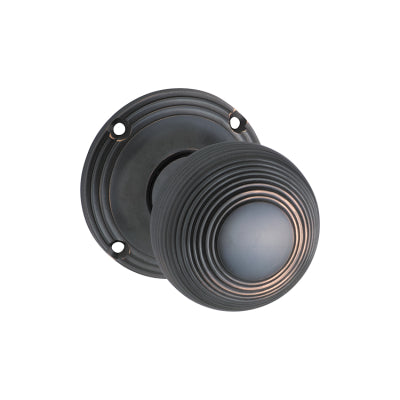 Tradco Door Knob Reeded Mortice Pair Antique Copper D51xP81mm BP60mm